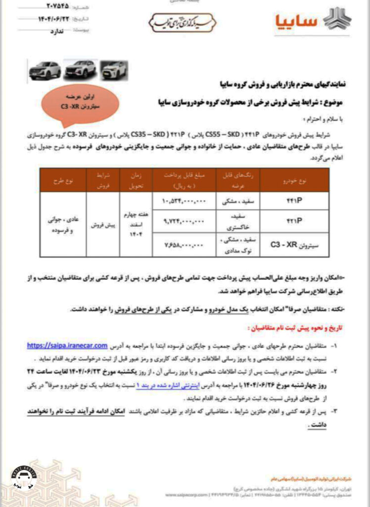 پیشفروش محصولات وارداتی سایپا / عرضه سیتروئن C3-XR